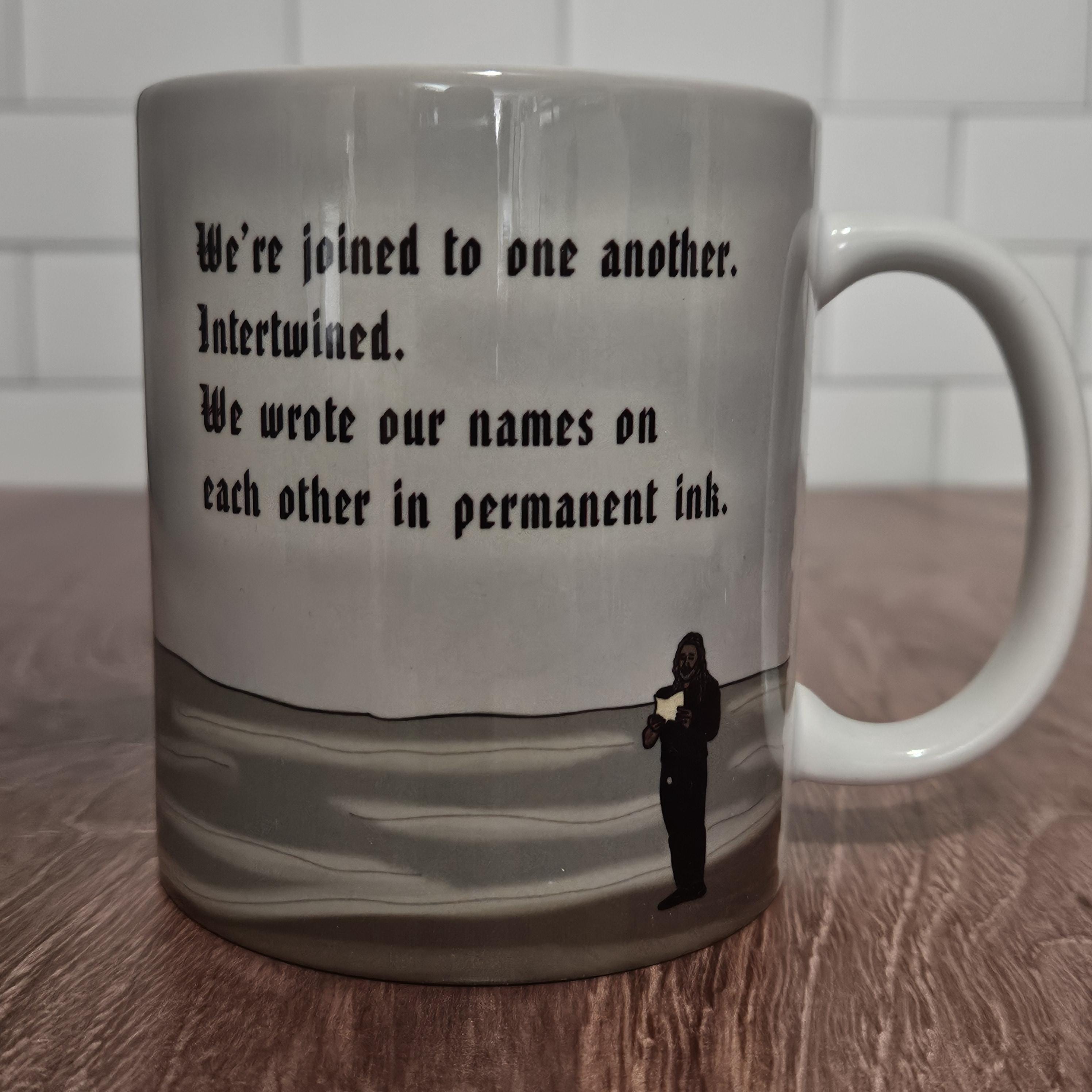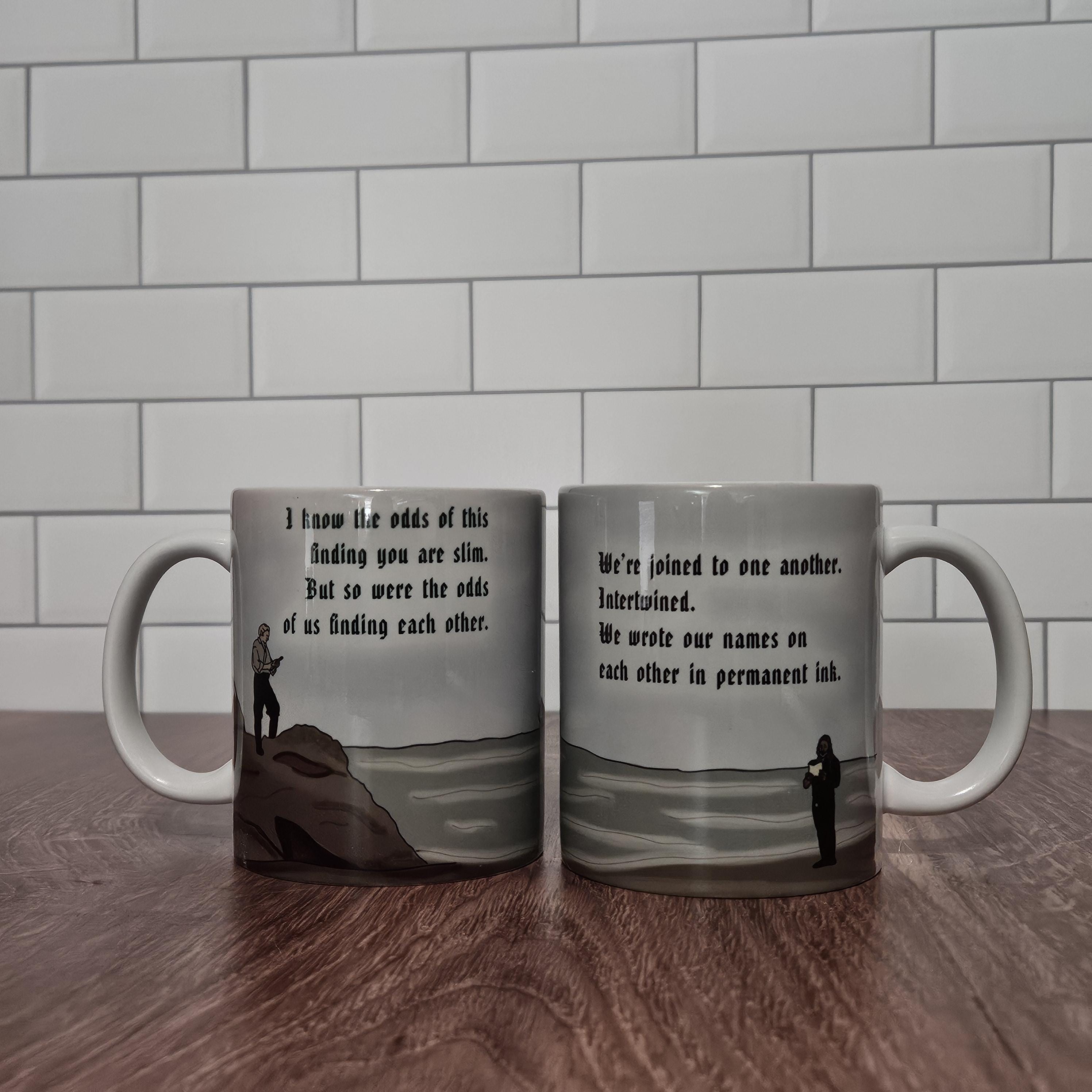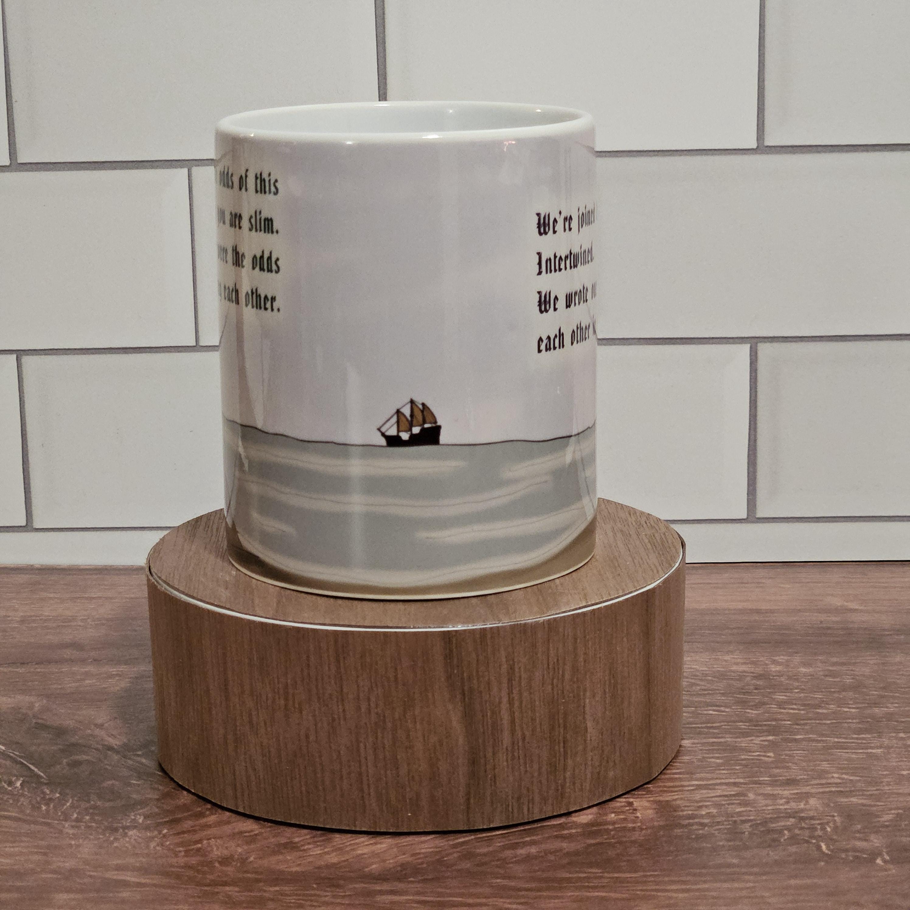 11 oz, dishwasher and microwave safe mug depicting Stede sending off his letter and Ed reading one on the beach, featuring snippets of those letters heard in the show.